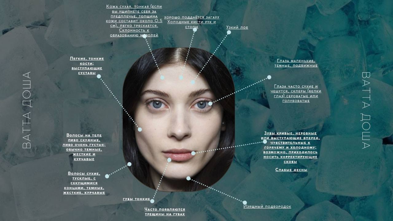 🌸У неё тонкая кожа с мелкими порами, прохладная и сухая в любую погоду. Черты лица у неё обычно утончённые и изящные, хотя иногда бывают неправильными или удлинёнными, а скулы могут быть высоковаты.Вата может быть низкорослой, и высокой, в любом случае фигура у неё худощавая